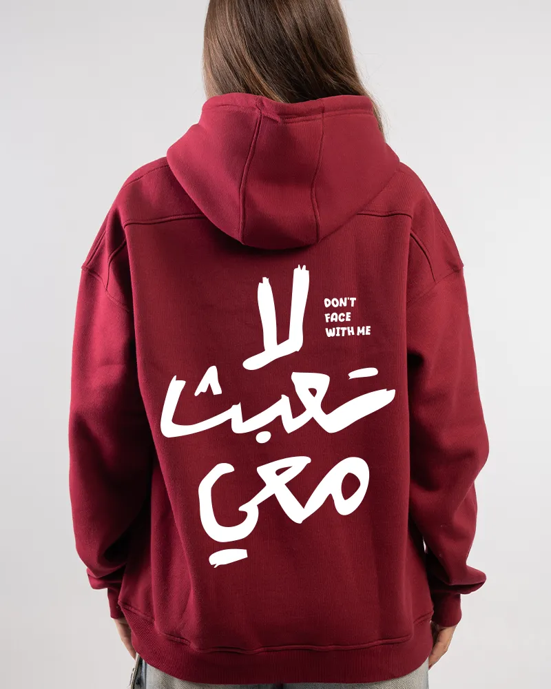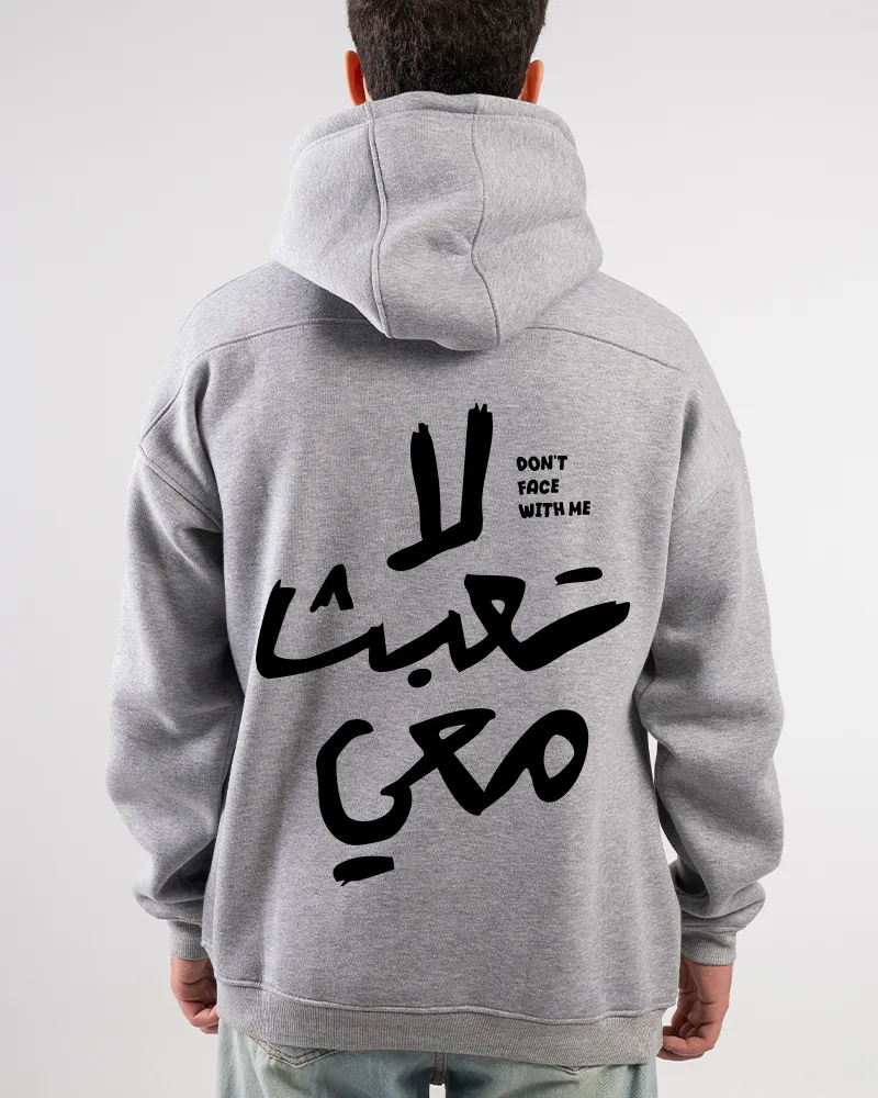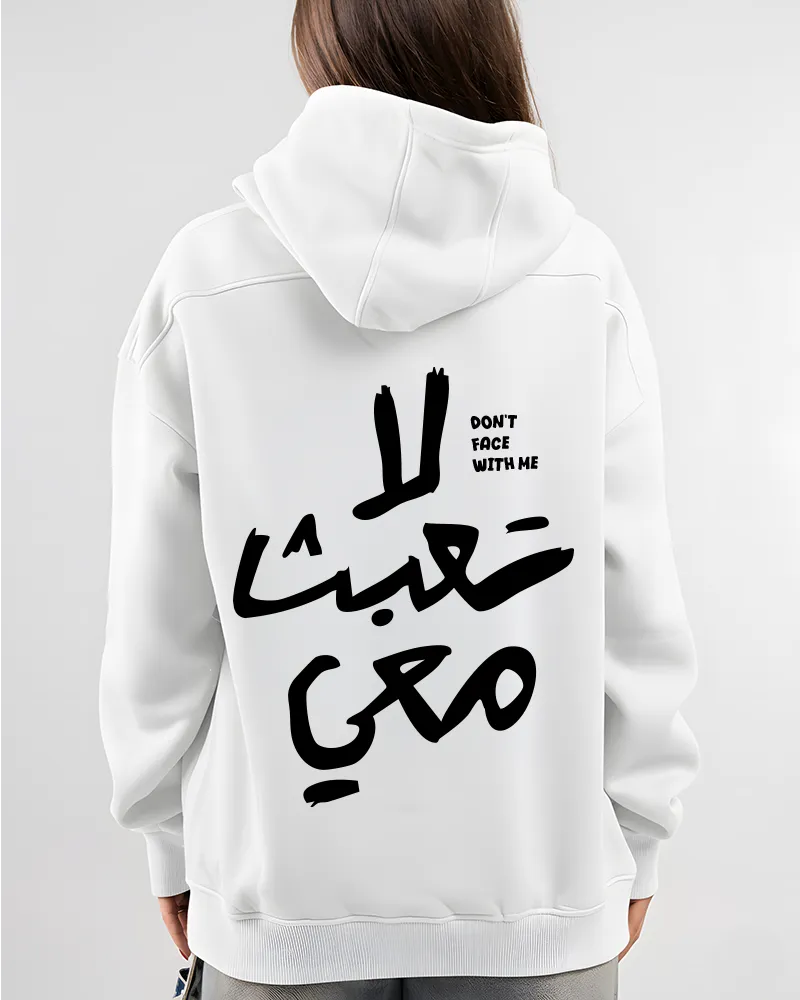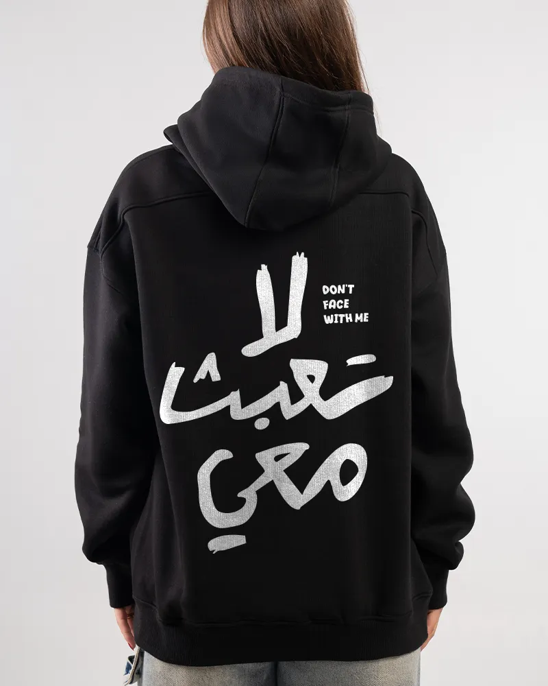 Make a definitive statement with our “لا تعبث معي” Arabic Quote Hoodie. This black, oversized hoodie features a bold back print of the phrase “لا تعبث معي” (meaning “Don’t Mess With Me”) in striking white Arabic calligraphy. It’s an ideal piece for those who appreciate meaningful Arabic Streetwear and powerful graphic design. The premium cotton blend ensures comfort and durability.