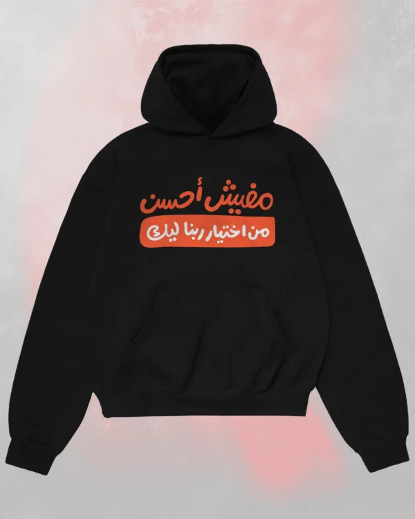Comfort and Faith combined! Get this Arabic Text Hoodie with the powerful quote “مفيش أحسن من اختيار ربنا ليك” on the front. Premium quality and inspirational style.
