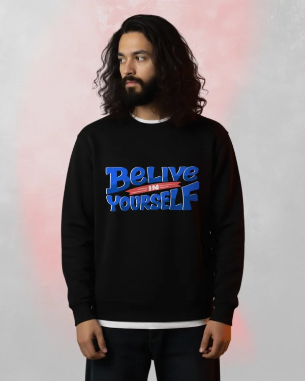 Boost your confidence in style with our Believe In Yourself Sweatshirt — designed for comfort, motivation, and everyday wear. This classic black crewneck features a powerful front print that keeps you inspired through every step of your day. Whether you’re out with friends, heading to class, or relaxing at home, this sweatshirt reminds you that you’ve got what it takes.