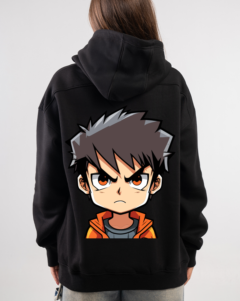 Express yourself with this Chibi Angry Anime Back Print Hoodie! Comfortable black fabric, unique Chibi character graphic. Get yours and stand out!