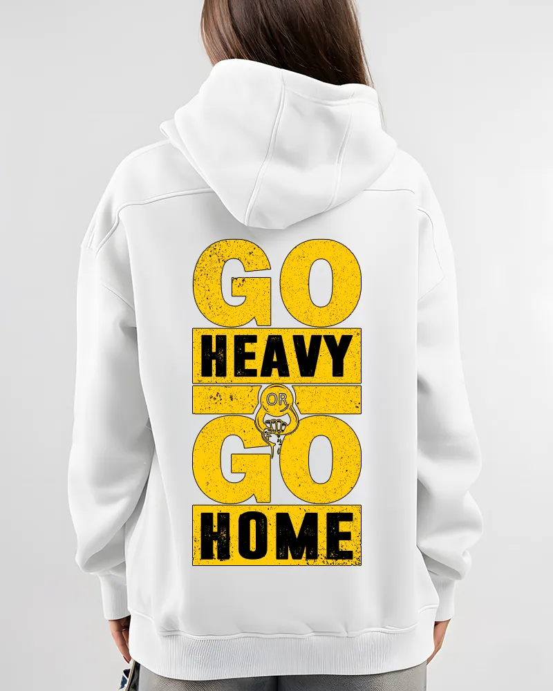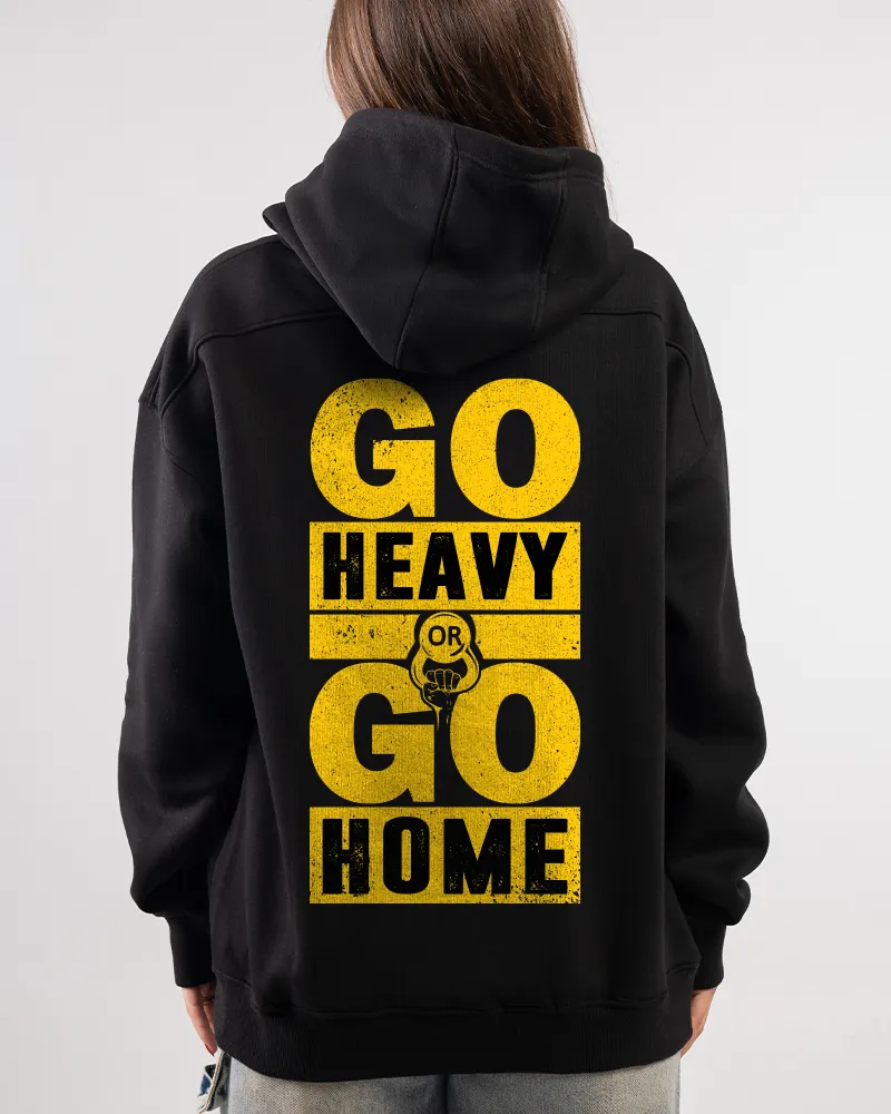 100% Cotton fabrics ensure premium comfort for daily wear! A classic unisex fit with a cozy hood and front kangaroo pocket. No excuses. Our Go Heavy Go Back Hoodie is made for those who give it their all — in the gym and in life.