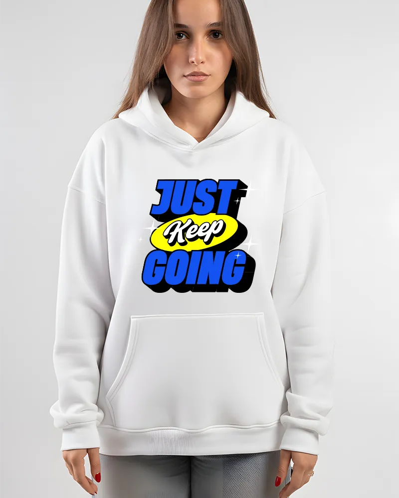 Our Just Keep Going Hoodie — your everyday reminder to stay comfy and keep pushing forward.