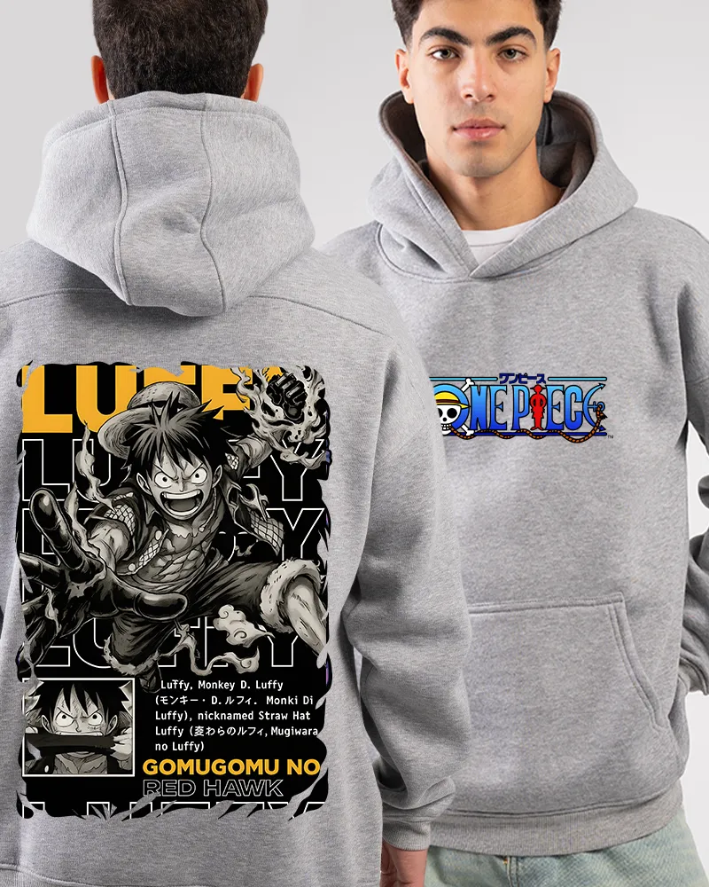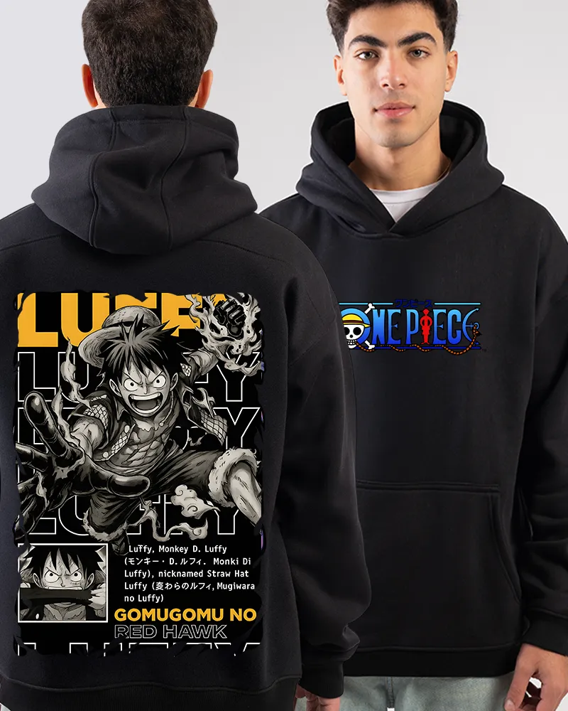 100% Cotton fabrics ensure premium comfort for daily wear! A classic unisex fit with a cozy hood and front kangaroo pocket. Luffy Anime Hoodie with front and back prints inspired by One Piece, comfortable, stylish, and perfect for everyday anime streetwear.