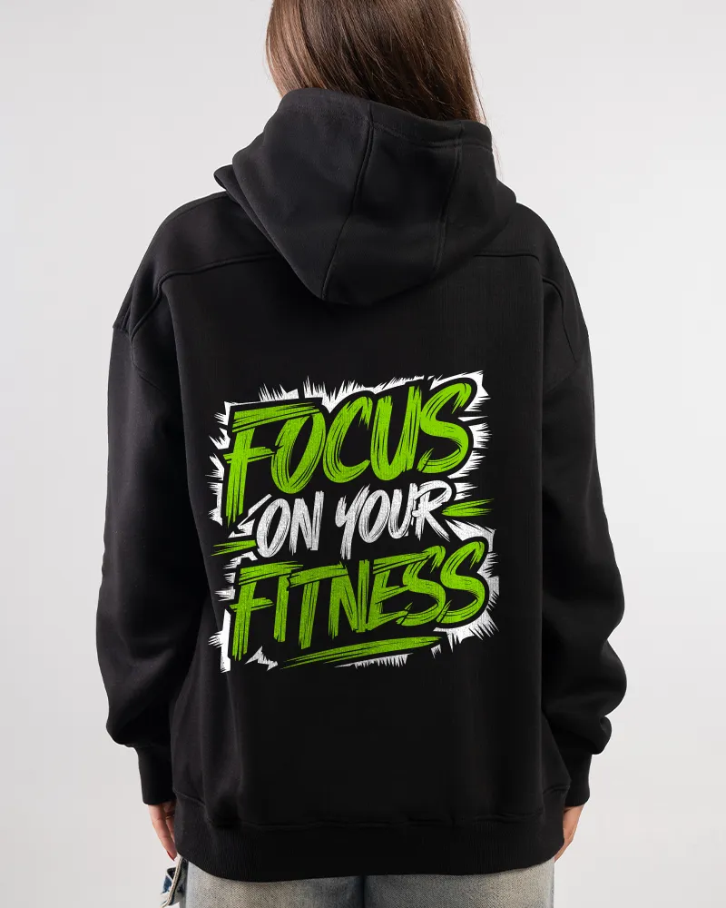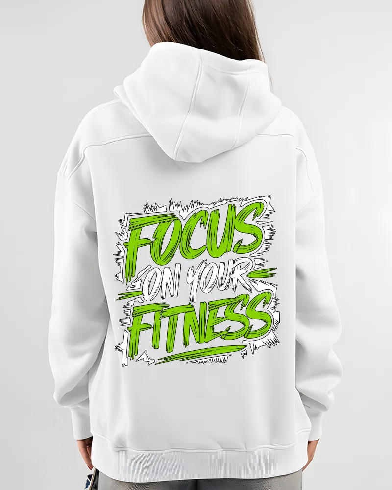 100% Cotton fabrics ensure premium comfort for daily wear! A classic unisex fit with a cozy hood and front kangaroo pocket. A bold Motivational Fitness Hoodie featuring the “Focus On Your Fitness” back print — perfect for gym sessions, streetwear, and everyday style.