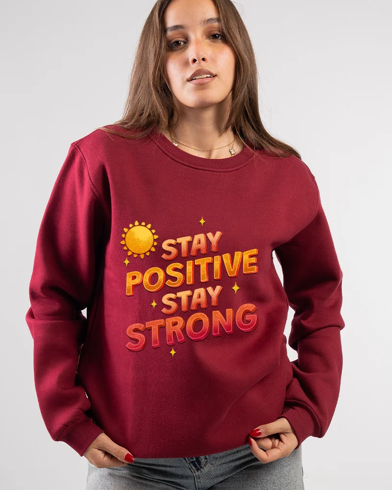 Stay motivated in comfort with our Stay Positive Sweatshirt. Designed in sleek with a bold front print, this crewneck is made to inspire you through every day. Crafted from a soft and durable cotton blend, it offers a relaxed unisex fit perfect for casual outings, gym warm-ups, or cozy days at home. Pair it with jeans or joggers for an effortless look that keeps your mindset positive and your style fresh.