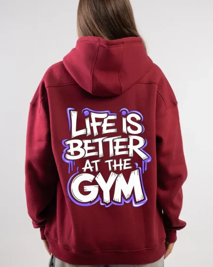 100% Cotton fabrics ensure premium comfort for daily wear! A classic unisex fit with a cozy hood and front kangaroo pocket. Comfy. Bold. Motivated. The Life Is Better at the Gym Hoodie keeps your mindset strong — shop it now!